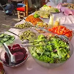 Här erbjuds en frukostbuffé varje morgon. En à la carte restaurang ligger på stället.